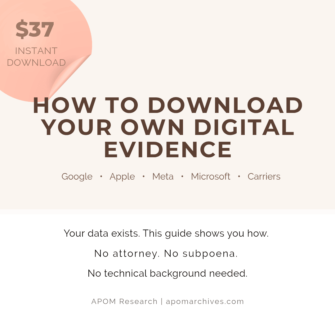 A login at 2:47 AM from a city you've never been to. A setting on your account you never changed. Your location recorded without your knowledge. These records exist on servers right now. And you can download them yourself -- no attorney required, no subpoena, no legal process.